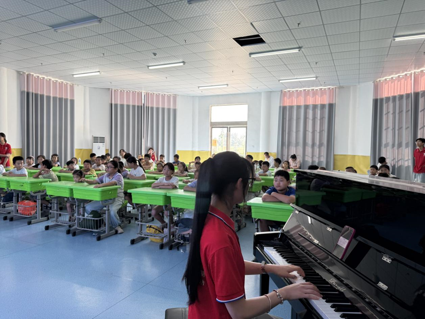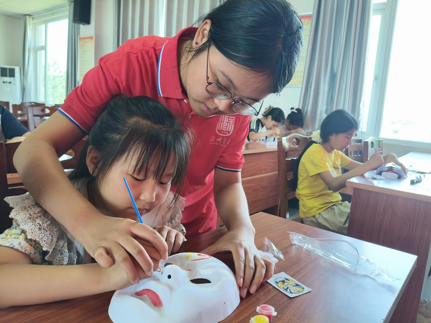 音乐与教育学院学生徐苗苗带着被褥和饭盒而来,潘村镇支教课堂上,孩子们大声跟唱红歌的模样让她笑意盈盈。文学与传媒学院的学生准备了《普通话趣味读本》,带领柳巷镇暑托班孩子说普通话,孩子们兴致勃勃,家长反馈孩子回家后主动用普通话朗读故事。