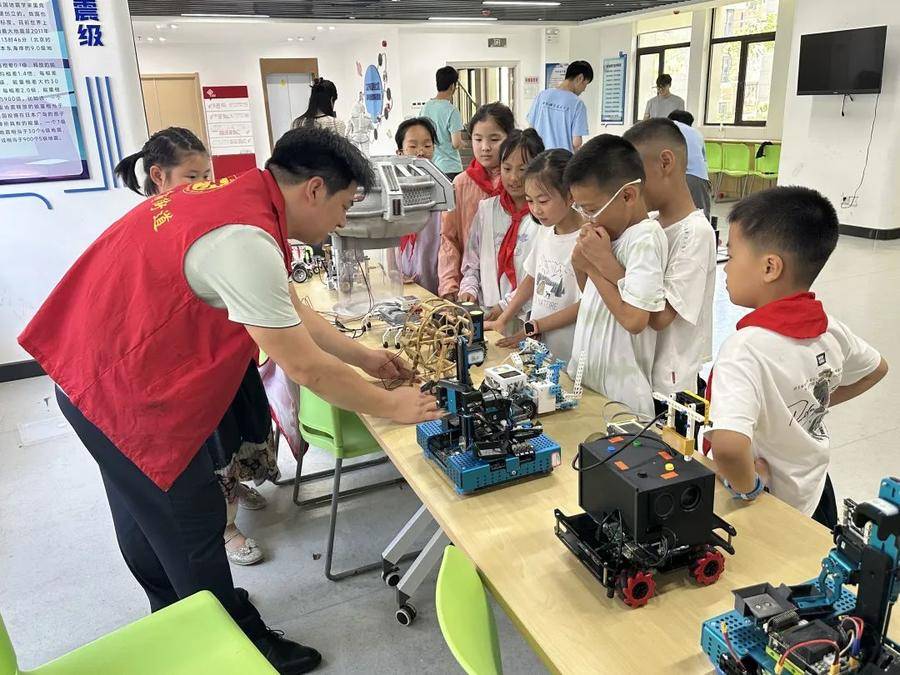 “每天都能学到新知识,音乐课和乐高编程课特别有意思!”乐农新村小学的学生蒋歆湉说。除了科技体验,暑托班还开设了少儿太极拳、非遗扎染、创意手工等特色课程,让孩子们在动手实践中感受传统文化的魅力。