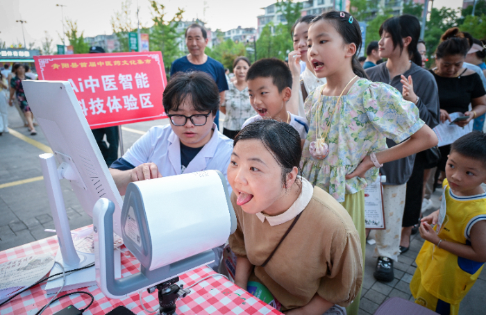 7月18日,青阳县首届中医药集市活动现场,AI中医智能科技体验区人头攒动。