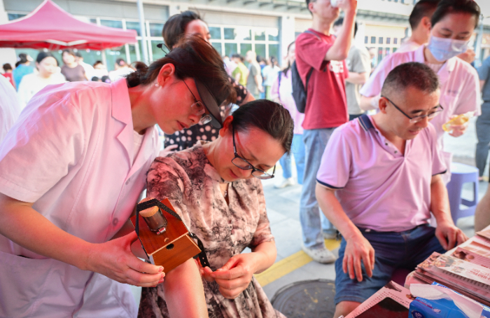 7月18日,青阳县首届中医药集市在该县亿达广场开市,来自青阳县中医院各科室的医疗专业技术人才为市民提供各类特色中医药服务。(储成胜)