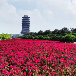 盛夏时节,安徽省颍上县滨河公园大片紫薇花竞相绽放,一簇簇、一串串的花朵缀满枝头,散发着迷人的芬芳。(徐庆)