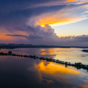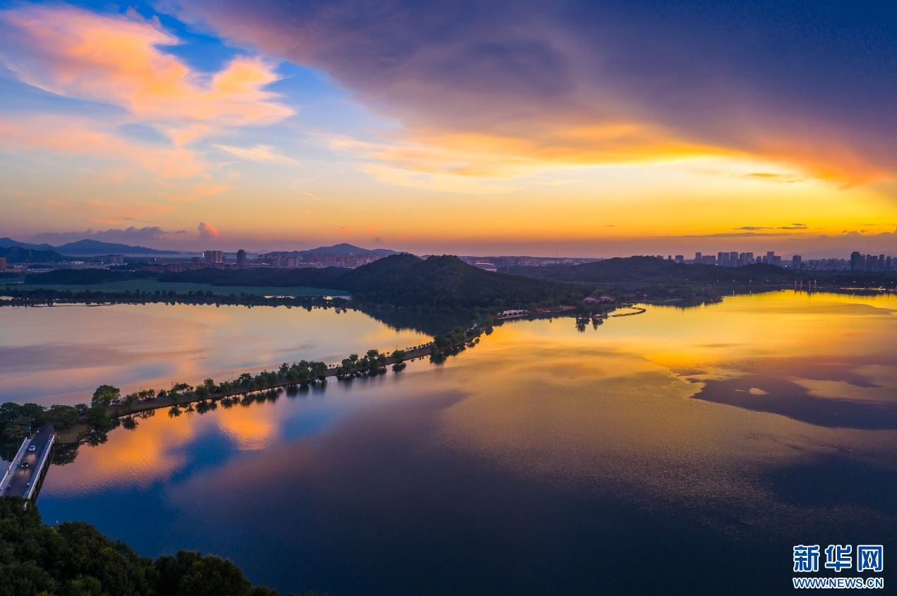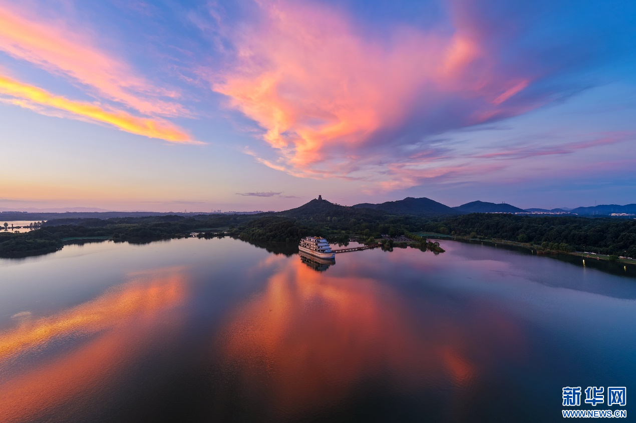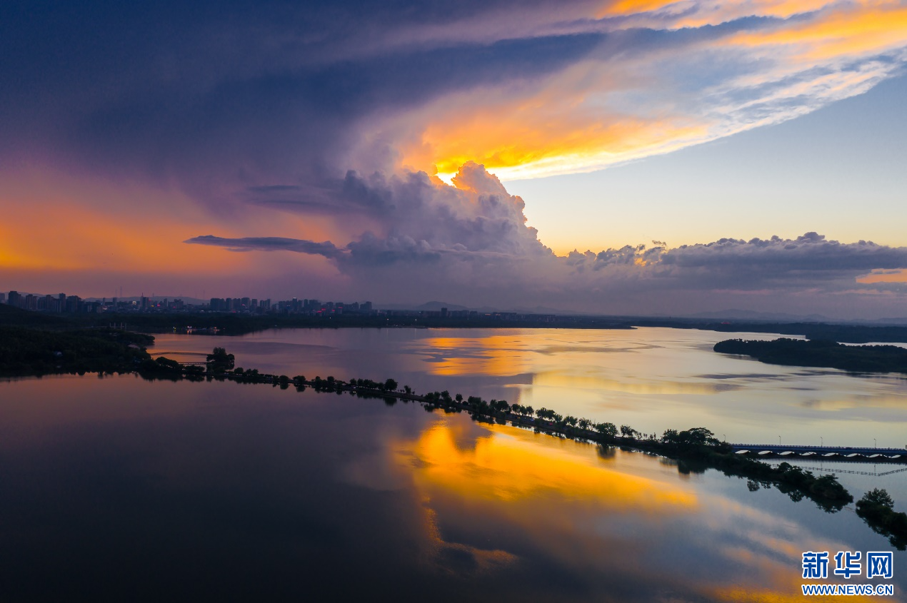 7月19日,安徽池州平天湖上演绚烂云霞奇观。