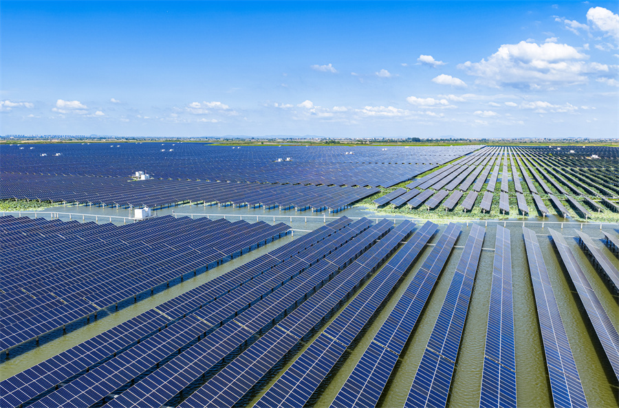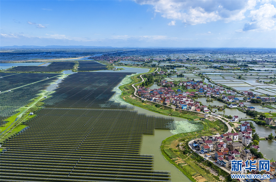 近年来,当涂县依托水乡优势,大力发展水上发电、水下养殖的“渔光互补”复合产业。项目在提供清洁电力、助力节能减排的同时,有效提升了土地(水域)综合利用率,实现了生态保护与经济发展的双赢,成为推动当地乡村全面振兴的有力引擎。新华网发(李成林 摄)