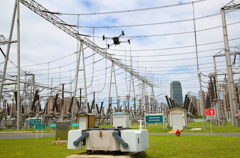 7月21日午间,在500千伏肥西变电站内,无人机和巡视机器人自动对全站重要电力设备开展巡视和红外测温工作。