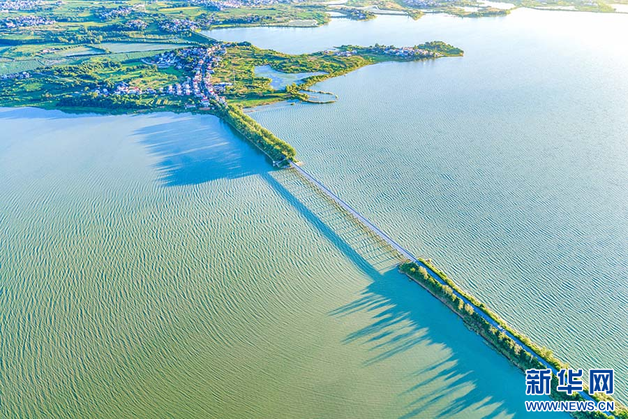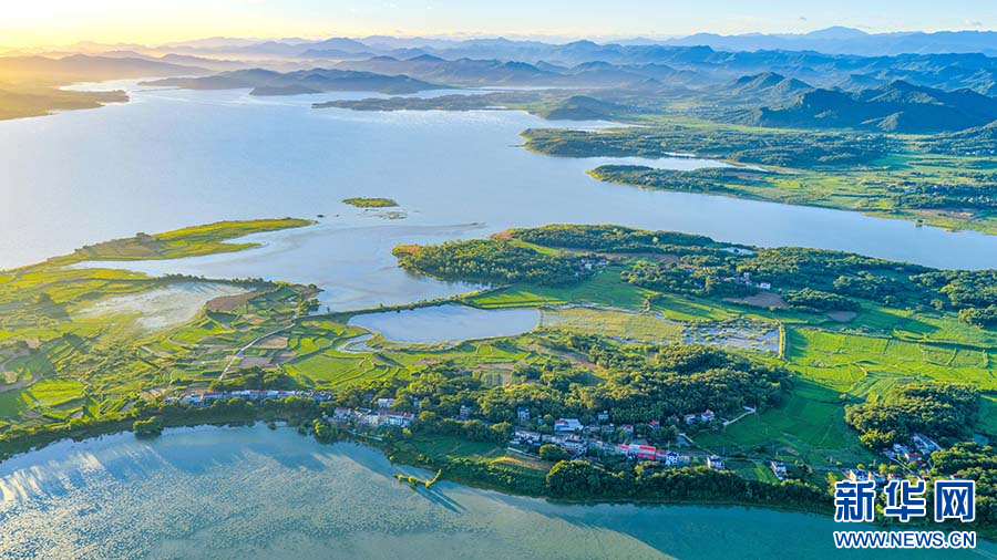 盛夏七月,安徽省池州市东至县升金湖国家自然保护区,一湖碧水与远山、田园、民居、岛屿相映成景,美不胜收。近年来,当地采取以自然恢复与人工修复相结合的原则,通过退田还湖、退圩还湖、植被恢复等举措,不断强化生态保护和修复工作,生态环境明显改善。新华网发(何清 摄)