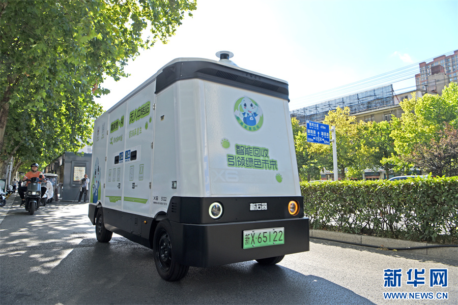 据介绍,该车辆依托AI智能调度,日均运送可回收物20吨。智能无人中转车搭配电动驱动与激光避障技术,全程低噪音、零排放,既实现“清洁转运”,又能降低清运成本,为淮南打造“无废城市”样板注入民生温度,提升了社会治理效能。新华网发(陈彬 摄)