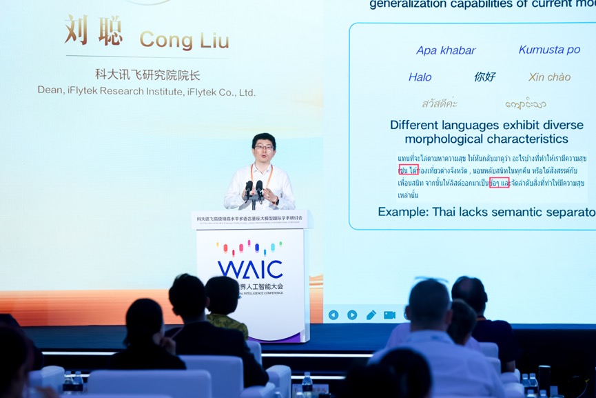 科大讯飞研究院院长刘聪在主题演讲中提出:“我们希望构建全方位的多语言大模型和它的应用,给世界提供第二种选择。”