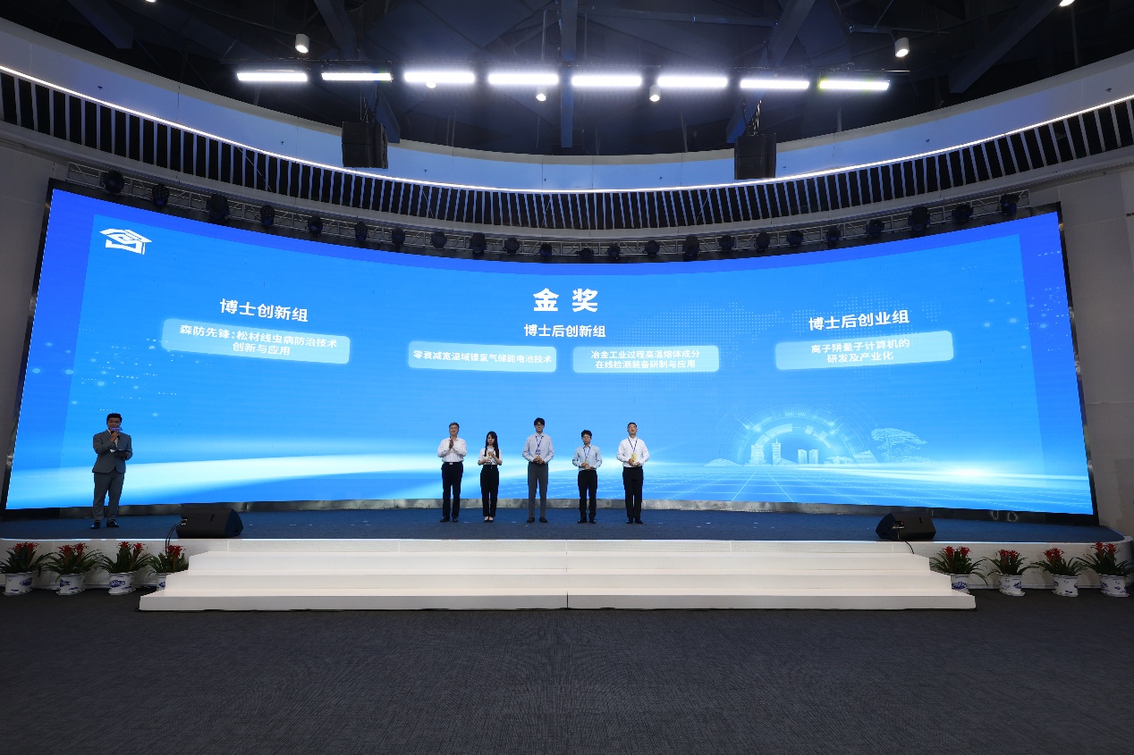 本届大赛设置博士后创新组、创业组及博士创新组三个组别,设金奖4个,银奖14个,铜奖28个,优胜奖56个,总奖金达360万元。赛事自启动以来,吸引592个创新创业项目参赛,经过初赛专家评选,129个优质项目晋级决赛。决赛现场,思维的火花激烈碰撞,创新的浪潮汹涌澎湃。129支博士(后)团队聚焦新一代信息技术与人工智能、新能源与节能环保、生物医药与大健康、高端装备制造与机器人等前沿领域展开激烈比拼。参赛项目既有对前沿技术的突破探索,也有对产业痛点的创新解法,凝聚着科研人员多年的智慧与汗水。经过两天紧张激烈的角逐,“零衰减宽温域镍氢气储能电池技术”“冶金工业过程高温熔体成分在线检测装备研制与应用”“离子阱量子计算机的研发及产业化”以及“森防先锋:松材线虫病防治技术创新与应用”4个项目脱颖而出,以卓越的实力和创新的理念,充分展现了安徽省在战略新兴产业领域的创新储备和人才梯队建设成果。