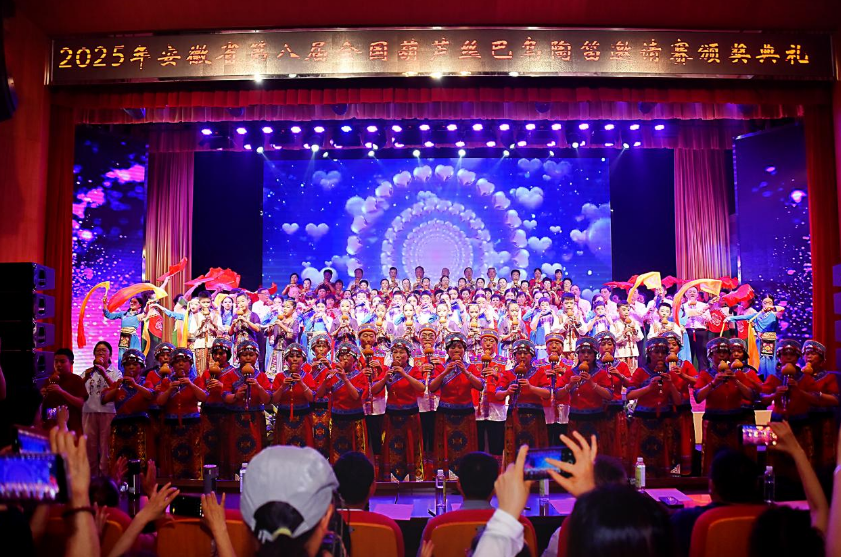 7月28日,2025安徽省第八届葫芦丝巴乌陶笛全国邀请赛在合肥市少儿艺术学校落下帷幕。为期三天的比赛中,来自全国各地的800余名葫芦丝巴乌陶笛爱好者,通过比赛、文艺展演切磋交流,共享音乐艺术盛宴。