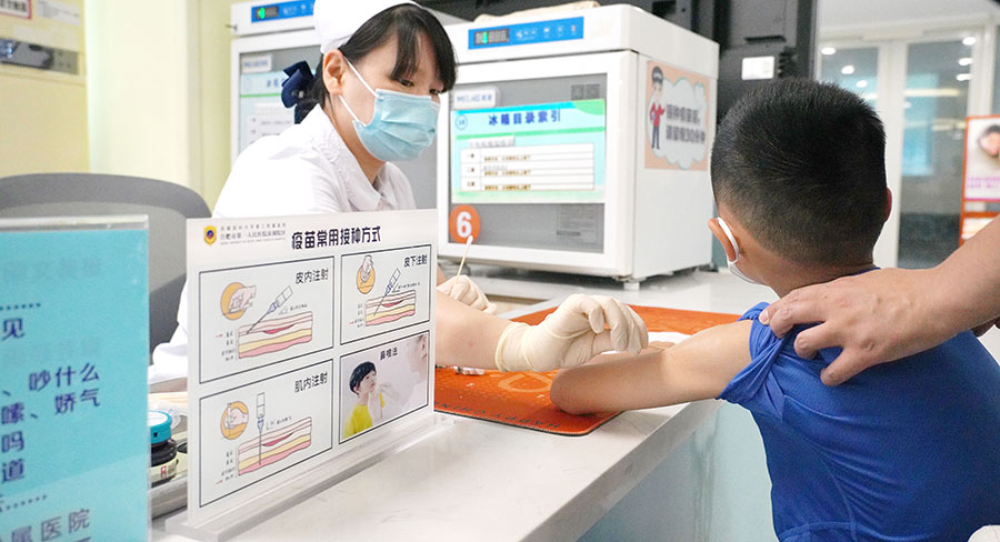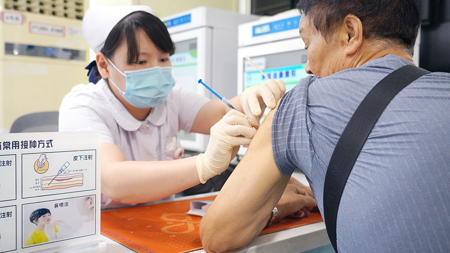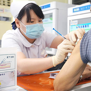 患者正在接种疫苗。 新华网发(夏园园 摄)
