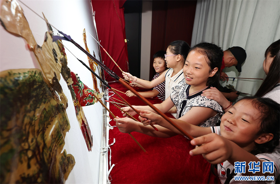 当日,安徽省淮北市总工会邀请非遗皮影戏传承人走进暑期儿童托管班,讲解皮影戏知识,表演皮影戏,让孩子们近距离接触皮影戏艺术,感受非遗文化的魅力。新华网发(张锋 摄)