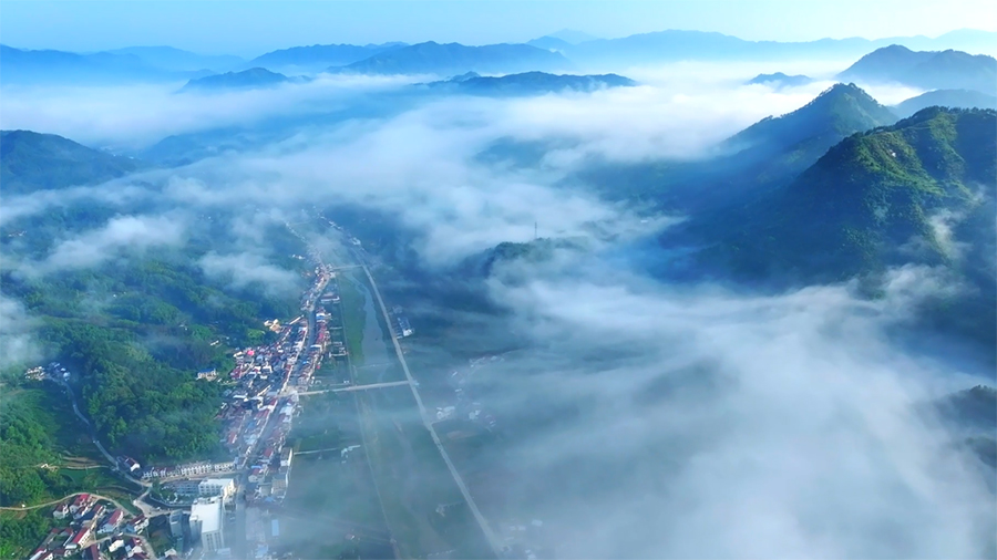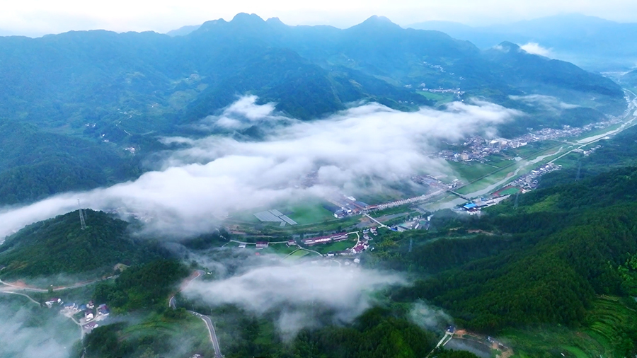 安徽太湖:薄雾笼山乡 美丽如画卷