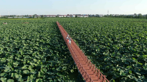 在夏桥镇毛桥村的水面上,一派水乡田园风光。毛桥村精心打造“莲藕经济”,探索出一条农文旅融合发展新路径,让莲藕产业从“一朵花、一池藕”向多元化、高附加值的全产业链发展,实现乡村振兴与产业升级的双赢。