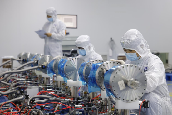 万瑞冷电洁净车间内,工人正在调试新一代智能型超高真空冷泵。
