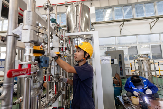万瑞冷电装配人员正在装配国产氦气制取项目关键装置。