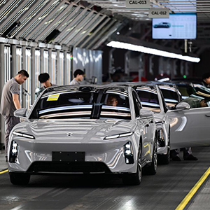 2025年7月1日在合肥市新桥智能电动汽车产业园蔚来第二工厂拍摄的新能源汽车生产线。新华社记者 周牧 摄