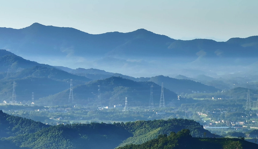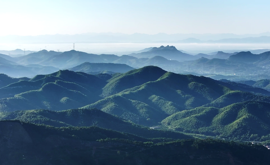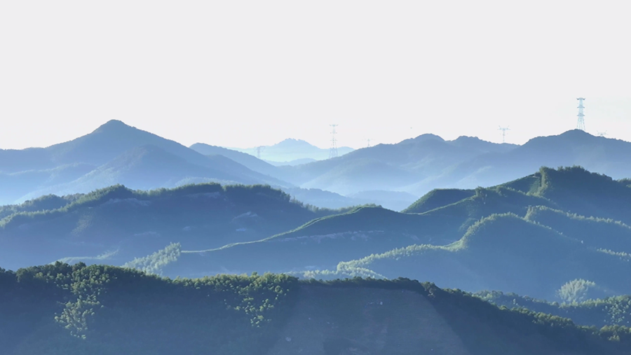 近日,在安徽省芜湖市繁昌区孙村镇,连绵山峦在晨雾的映衬下层叠交错,宛若一幅天然水墨画卷。(肖本祥)