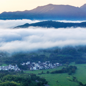 近日,安徽省黟县卢村雨后放晴,出现大面积平流云景观,鳞次栉比的徽派古民居若隐若现,宛如一幅美丽的乡村画卷。(施亚磊)