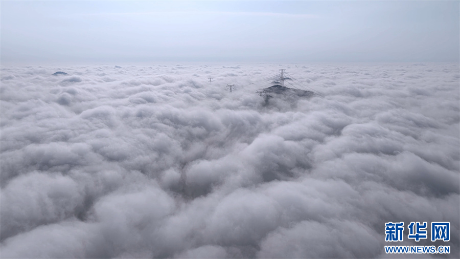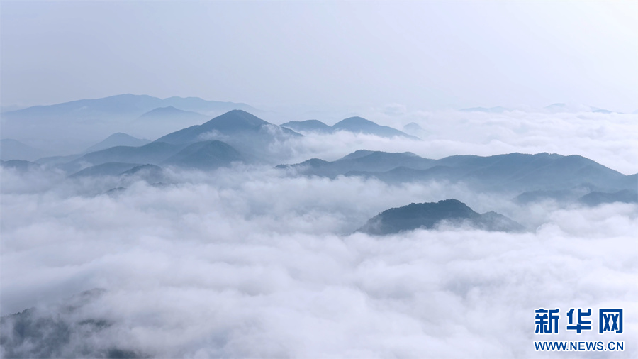 9月3日清晨,安徽省芜湖市繁昌区孙村镇出现壮美云海景观。从空中俯瞰,云海如海浪般翻涌流动,与远处的青山和山间的民居相互映衬,构成一幅诗意壮丽的生态画卷。