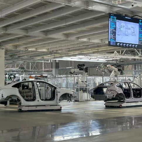 合肥市新桥智能电动汽车产业园蔚来第二工厂内拍摄的新能源汽车生产线。新华社记者吴慧珺 摄