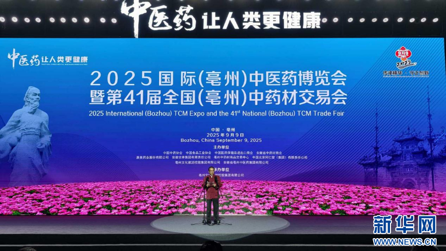 新华网合肥9月9日电(吴万蓉)9月9日,2025国际(亳州)中医药博览会暨第41届全国(亳州)中药材交易会在安徽亳州开幕。本届药博会以“中医药,让人类更健康”为主题,以“传承精华、守正创新”为关键词,设置文化、经贸、学术、旅游四大板块20项活动。
