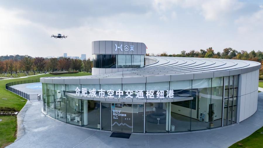 图为骆岗公园内的合肥城市空中交通枢纽港,集观光旅游、形象展示、城市会客、低空通勤等多功能于一体,可同时存放10架航空器,旨在打造以骆岗公园为核心应用场景的低空交通生态。新华社发