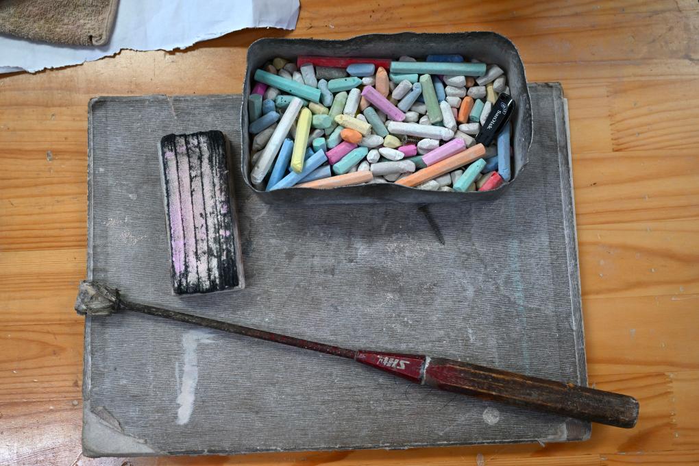 2025年9月5日,叶连平在安徽省马鞍山市和县乌江镇卜陈村的一间教室忙碌。新华社记者 黄博涵 摄