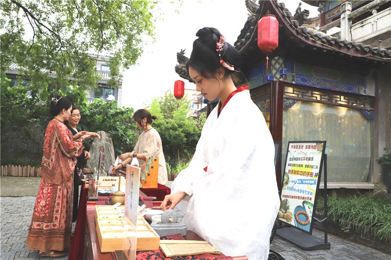 “除了精彩的文艺演出,我们在古药园内还展示了亳州的牛肉、花草茶等特产,以及中药香珠香包、发簪发饰等文创产品,深受游客和嘉宾的喜爱。”华祖庵景区负责人吴洁介绍,游客和嘉宾不仅可以近距离观赏,还能品尝特产,自己动手制作中药手串,体悟中医药文化的博大精深。