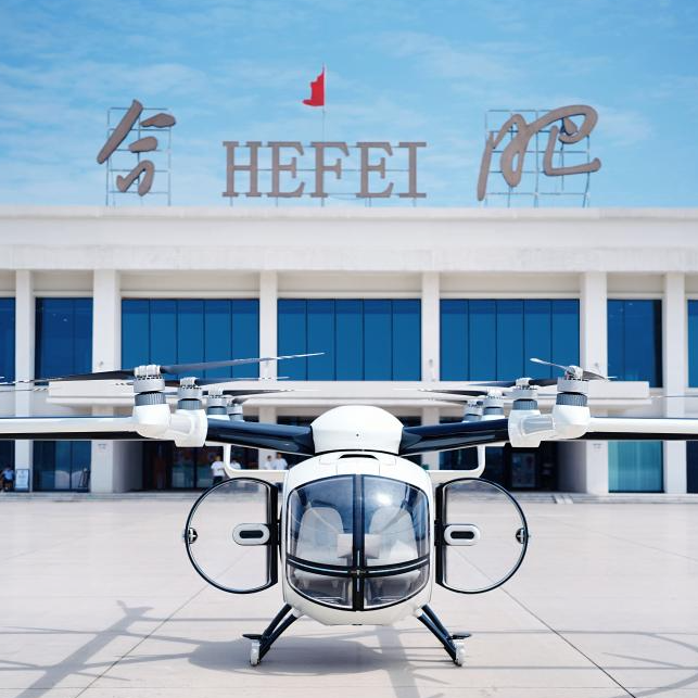 零重力eVTOL“鹊飞”在合肥骆岗公园航站楼前做试飞准备。新华社发