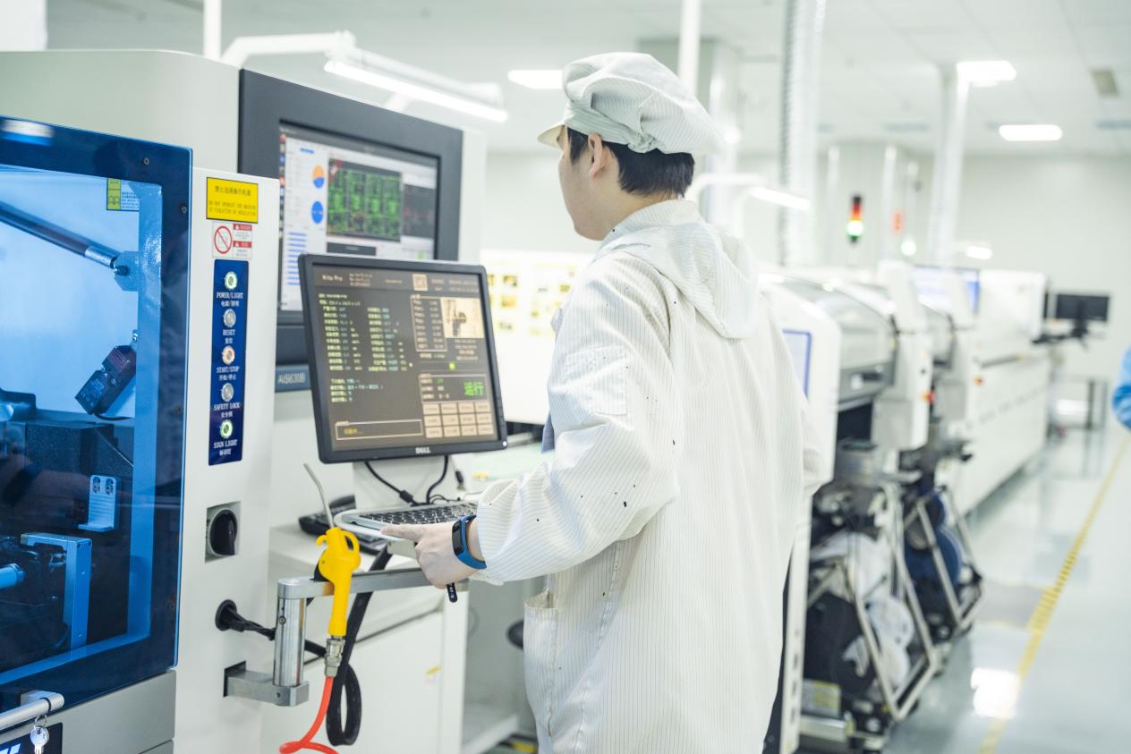 2025年8月13日,合肥恒新基电子传感器生产线上,工人正在检测设备。(肥东县委宣传部供图)
