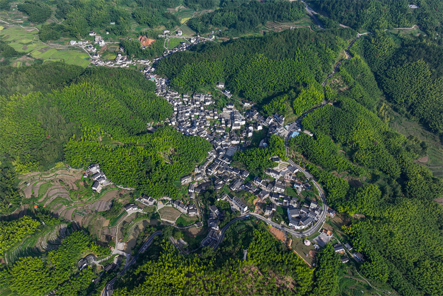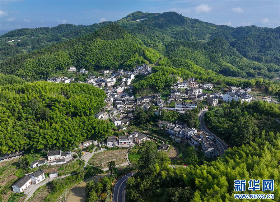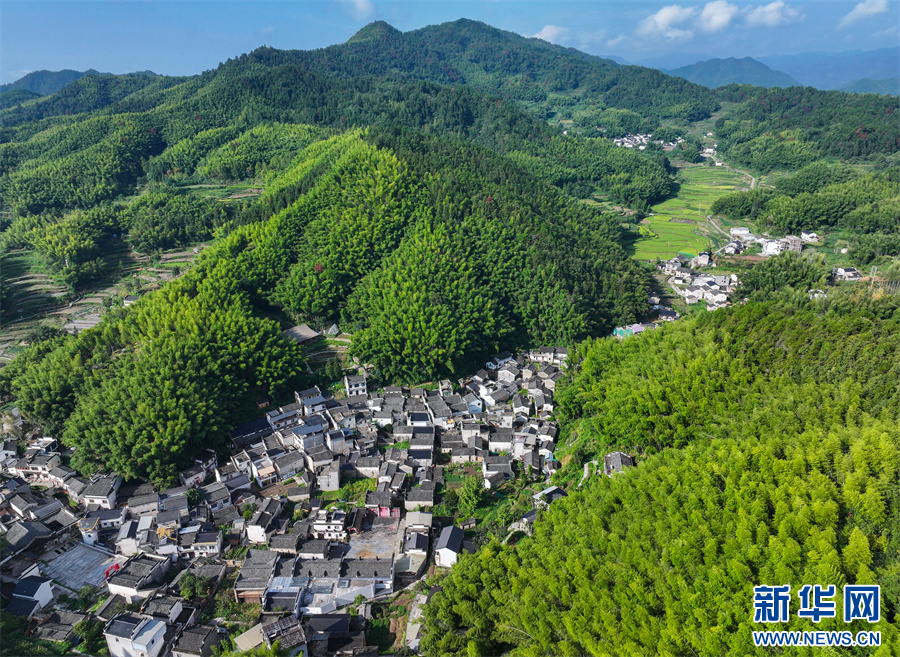 初秋时节,安徽省黄山市徽州区呈坎镇灵山村景色旖旎,鳞次栉比的徽派民居与青山、竹林、梯田等相映成景,构成一幅美丽的生态田园画卷。