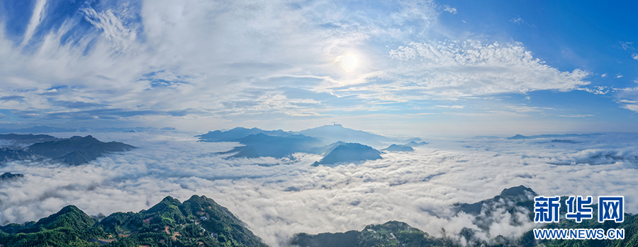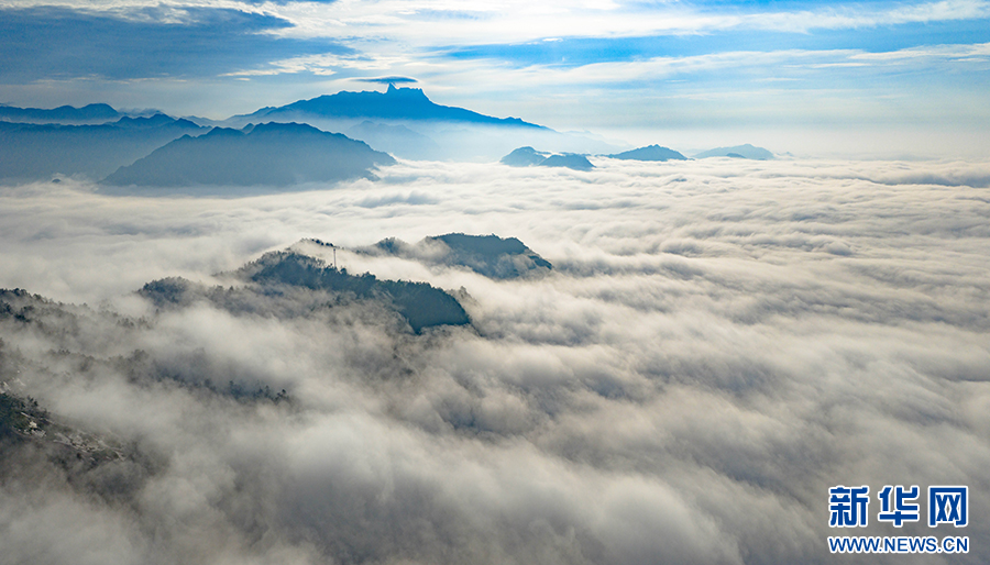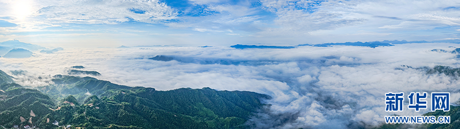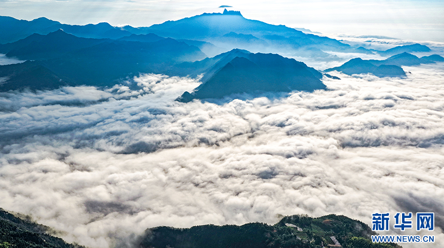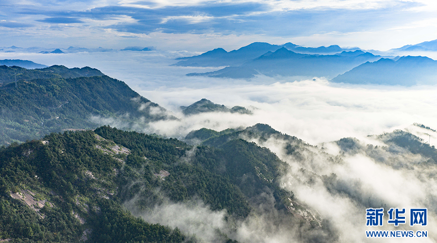 9月14日,地处大别山腹地的安徽省安庆市岳西县菖蒲镇出现云海景观。远处,连绵的峰峦宛如一座座岛屿,若隐若现,仿佛一幅动态的水墨长卷。新华网发(王先国 摄)