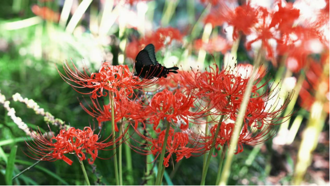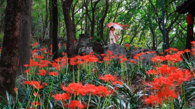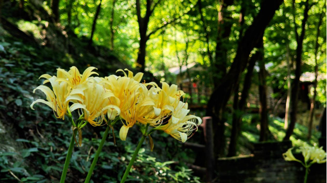 秋日的安徽铜陵永泉小镇,石径蜿蜒、林木错落、溪涧潺潺,最动人的景致,莫过于那片盛放的彼岸花,簇簇花茎挺拔而立,顶端的花瓣如烈焰般舒展。