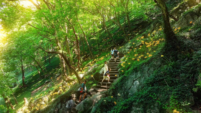 红黄花潮与翠绿的草木交织,在秋日的暖阳下拼缀出独特的山野画卷。引得游人驻足观赏,沉醉在这秋日独有的浪漫景致中。(章龙)