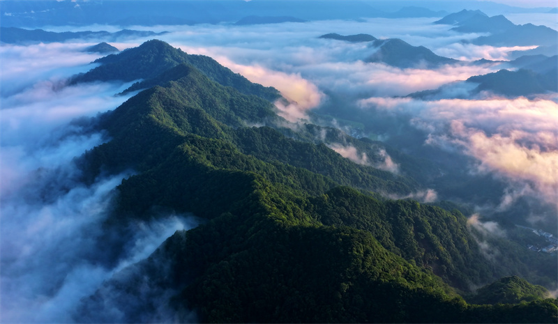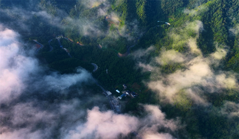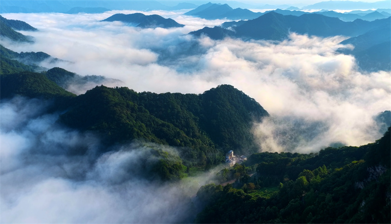 近日,安徽省池州市仙寓山云雾缭绕。