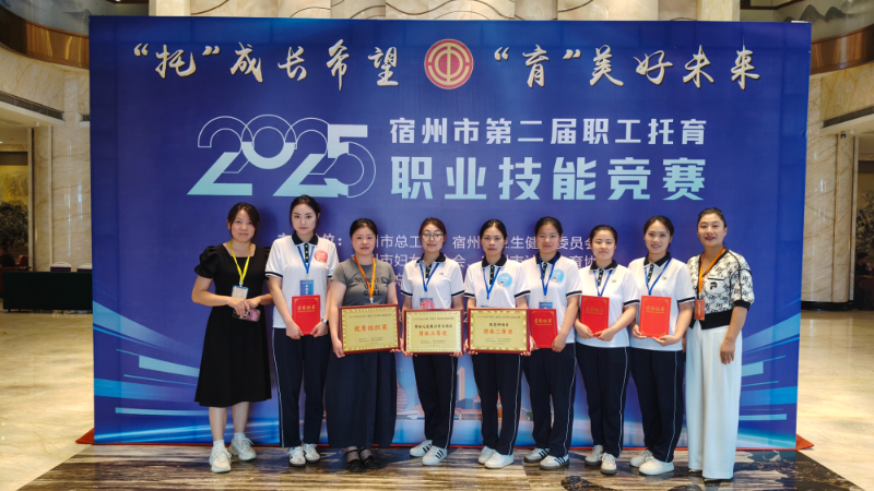 近日,由宿州市总工会主办的2025年宿州市第二届职工托育职业技能竞赛落幕。灵璧县总工会精心选拔、积极备战,由6名队员组成的参赛队伍在激烈角逐中表现亮眼,最终斩获2025年宿州市第二届职工托育职业技能竞赛优秀组织奖、保育师项目团体二等奖、婴幼儿发展引导员项目团体三等奖及4名队员个人三等奖等荣誉,充分展现了灵璧县托育服务队伍的专业风采与过硬实力。