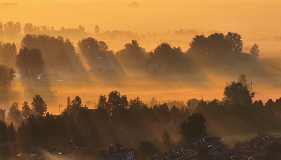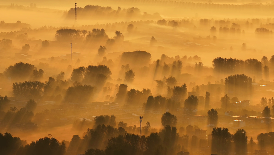 9月16日清晨,一层薄雾笼罩了安徽省颍上县的乡野,将错落的村庄、连片的田野轻轻包裹,宛若一幅流动的水墨画卷,尽显朦胧之美。(徐庆)