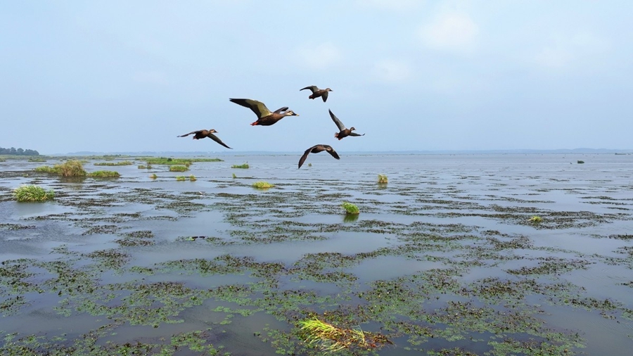 湖面之上,苍鹭舒展羽翼掠过水面,凤头䴙䴘带着小䴙䴘在碧波间灵活穿梭,水雉踩着浮叶轻盈漫步……各色水鸟或动或静,为湖水增添了无限活力,尽显自然和谐之美。如今的武昌湖,既是承载历史记忆的文化地标,更是水鸟栖息的生态乐园。(吴园园)