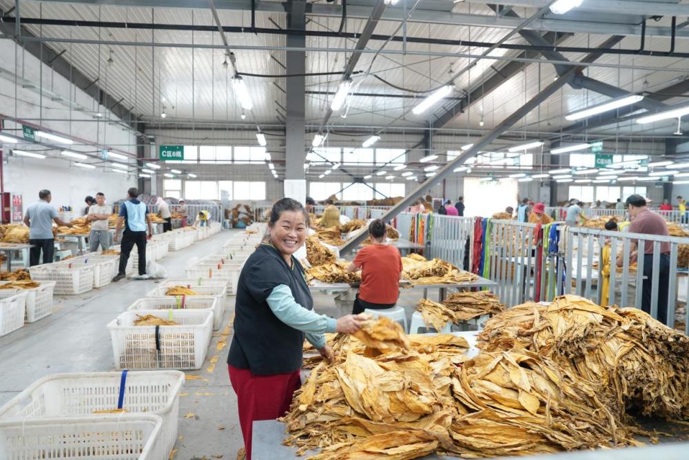 同一时间,黄渡烟站内也是一派热火朝天的景象。一筐筐分拣整齐的烟叶堆成“金堆”,工作人员仔细比对叶片色泽与成熟度进行分级,严守标准进行定级。“黄渡烟站服务范围覆盖宣州区5个乡镇以及宁国市、绩溪县的部分乡镇。”站长晏伟伟介绍道,预计整个收购季能收5.5万担烟叶,服务246户烟农。此外,收购季带动了周边村民就业增收,每天有600多人作业,每人每天能挣100元左右。