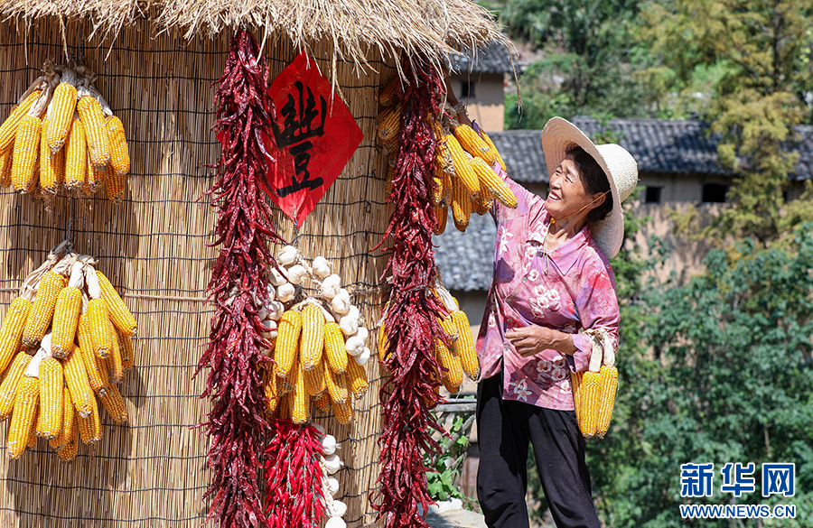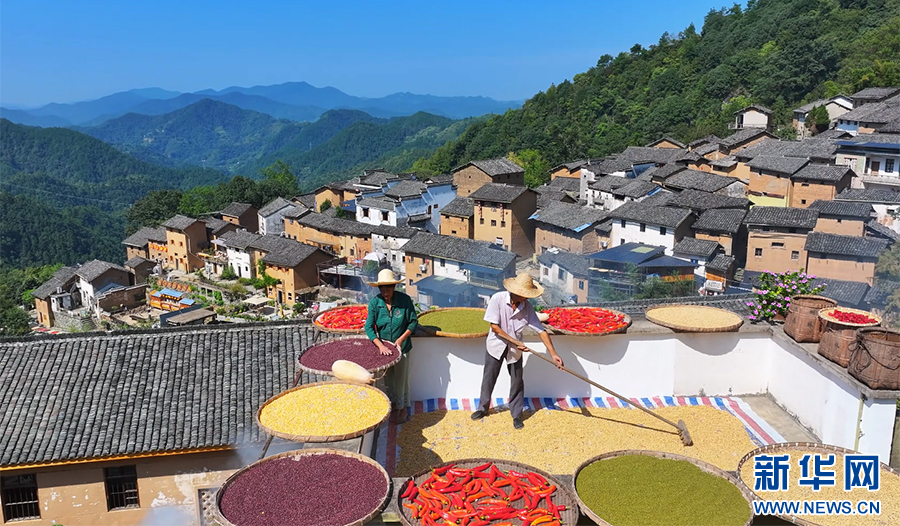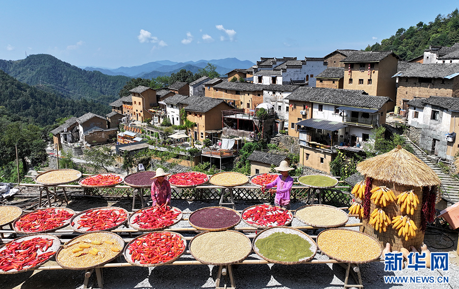安徽歙县:土楼披“霓裳” 村民晒秋忙-新华网