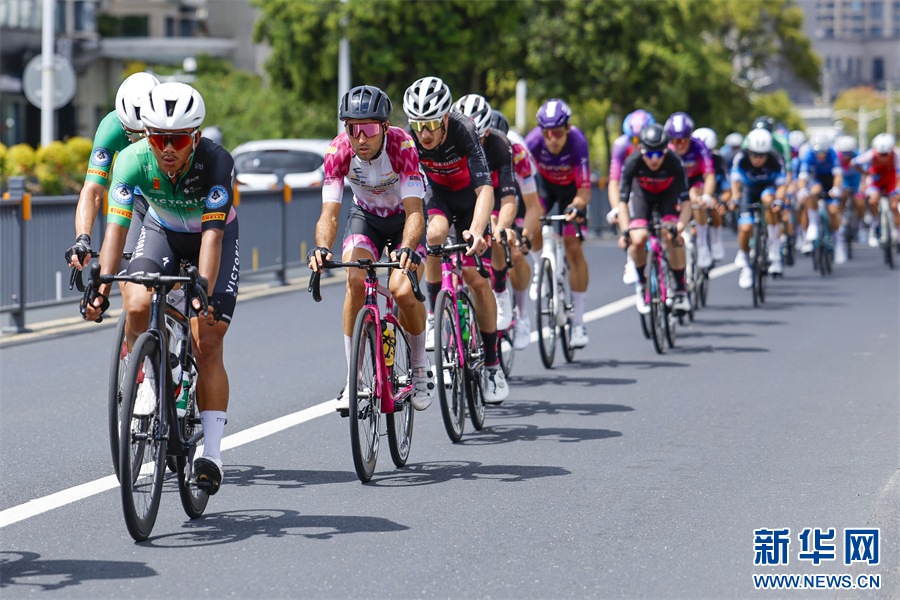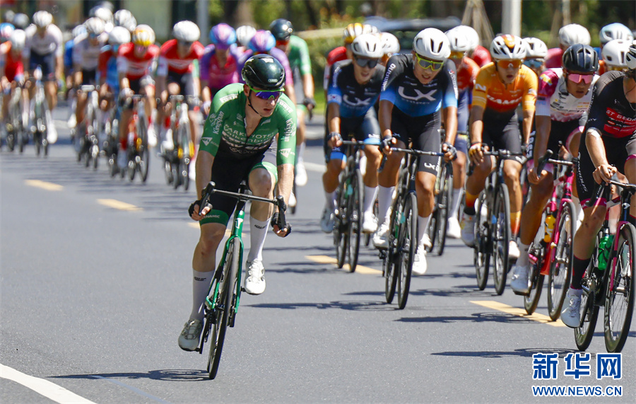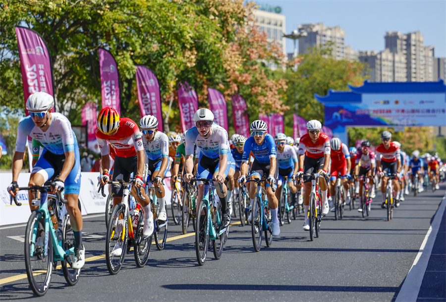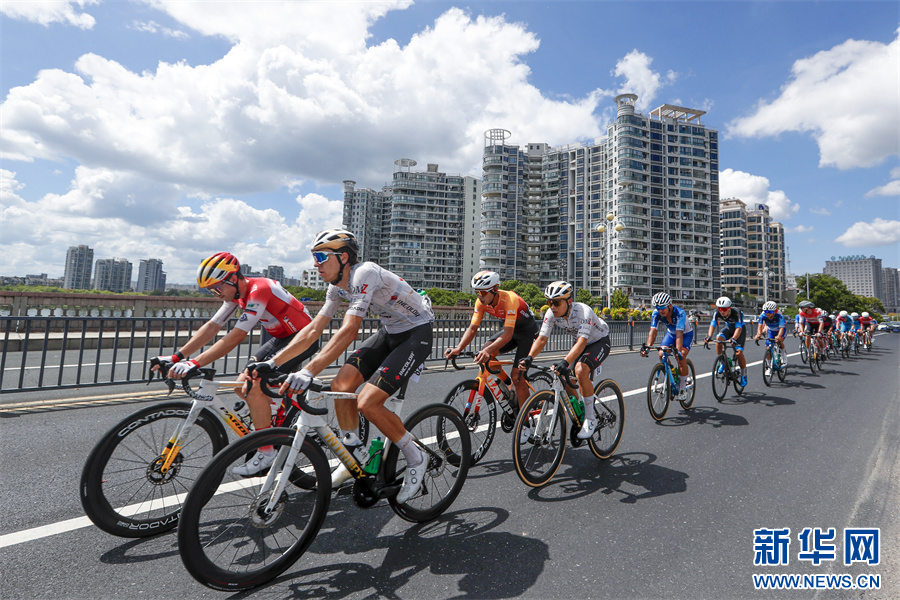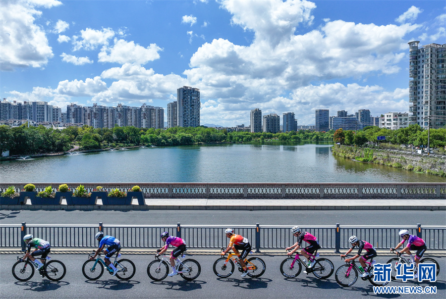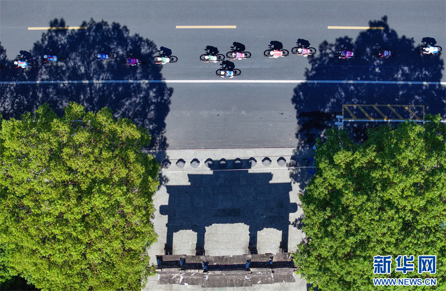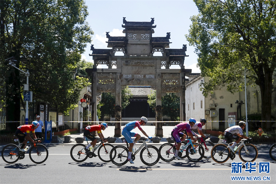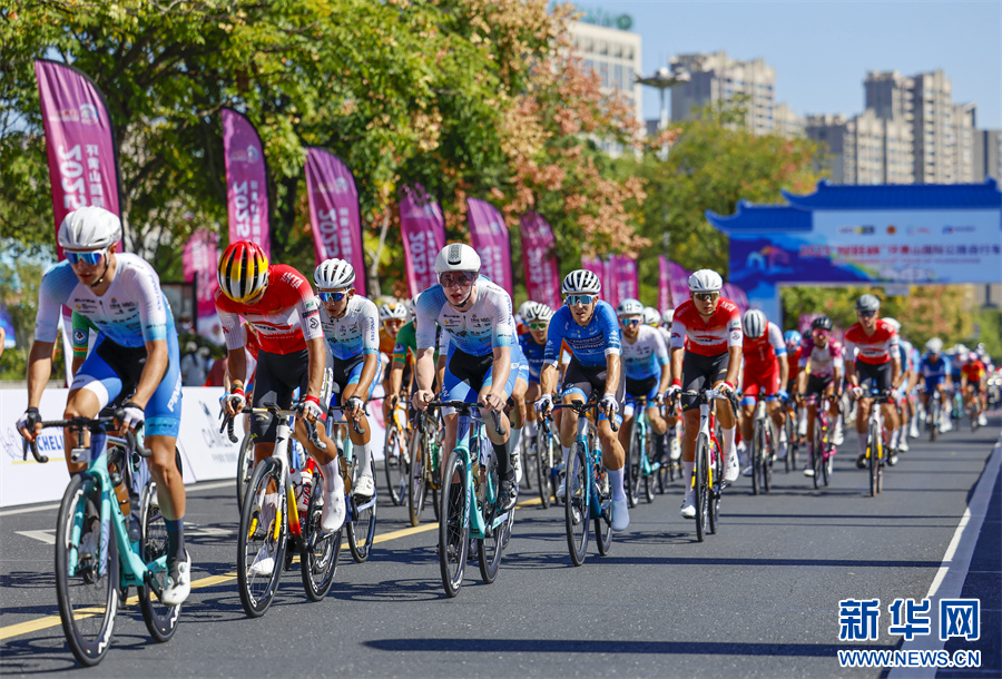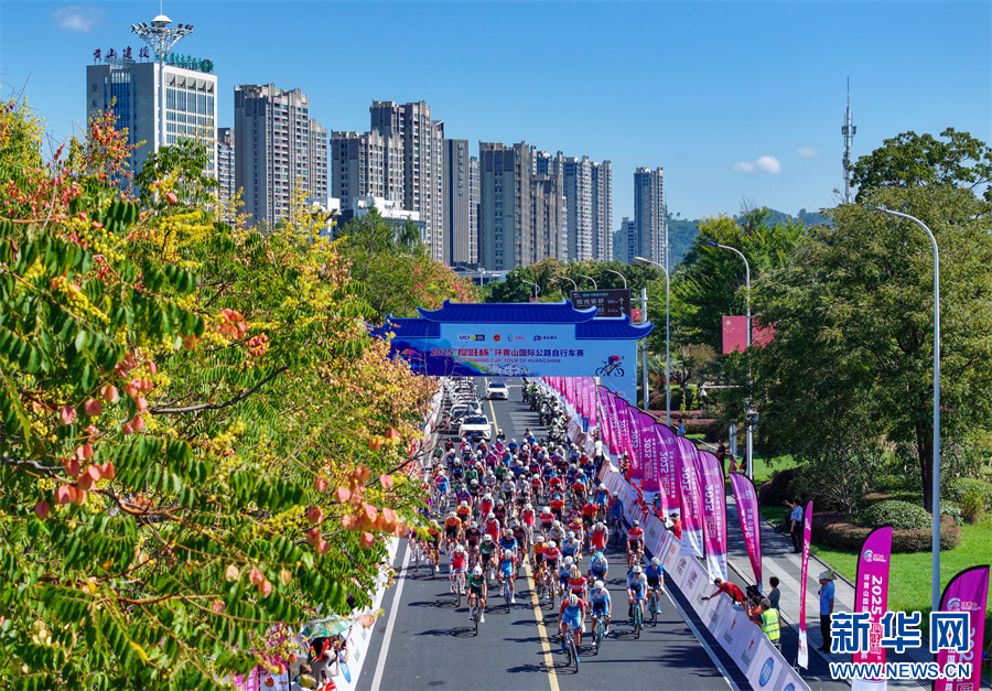 当日,2025环黄山国际公路自行车赛在安徽省黄山市屯溪区鸣枪开赛,来自国内外18支参赛队伍99名选手齐聚新安江畔,在沿途如画的风景中激烈角逐。新华网发(施亚磊 摄)