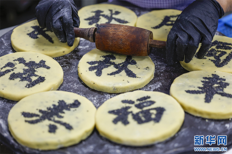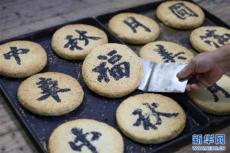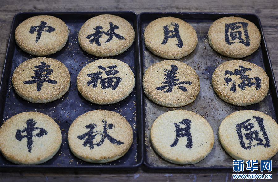 “过中秋,吃麻饼”是徽州民间的传统习俗。临近中秋佳节,在安徽省黄山市祁门县,徽州制饼手艺人坚持古法工艺,经过配料、打面皮、包馅、压形、写字、粘芝麻、烘烤等多道手工工序,制作出可食可赏、寓意团圆的“徽州月饼”。