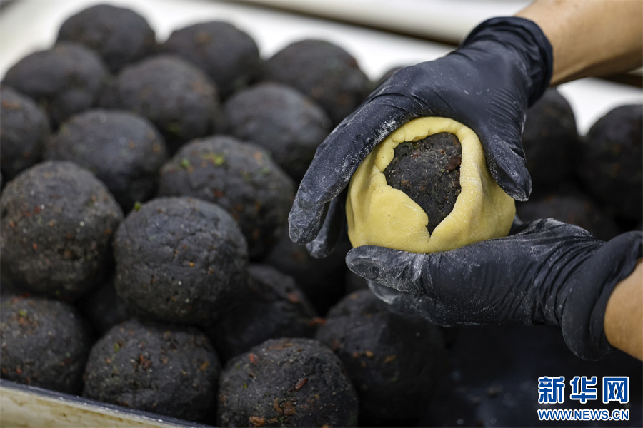 9月18日,安徽省黄山市祁门县,制饼手艺人正在包馅。
