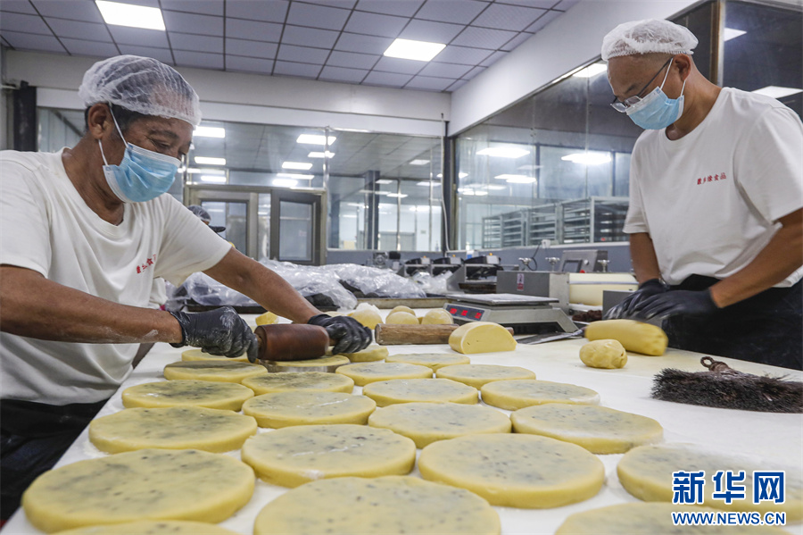 “徽州月饼”又称“徽州麻饼”,是徽州地区传统中秋糕点,以其皮薄酥脆、甜而不腻的口感深受人们喜爱。新华网发(施亚磊 摄)