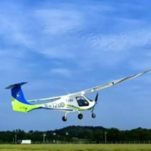 伴随着低沉的嗡鸣,一架电动固定翼飞机缓缓滑向500米长的水泥跑道,几秒加速后,银翼腾空而起飞向蓝天。舷窗之外,初秋的田野画卷缓缓铺展在游客眼前。