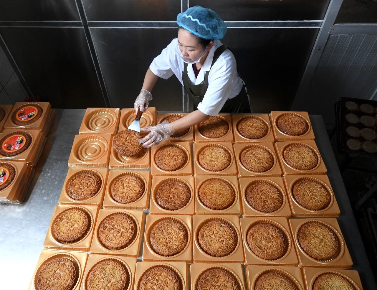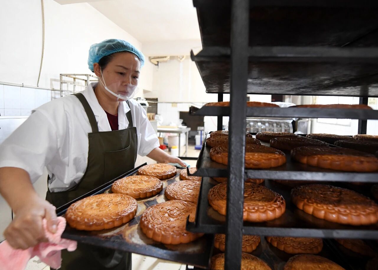 中秋临近,工厂迎来一年中最繁忙的时节。目前,工人们每天连续制作9个小时,最多也只能产出800多个大月饼。即便是供不应求,褚新红也始终将“安全与品质”放在首位。