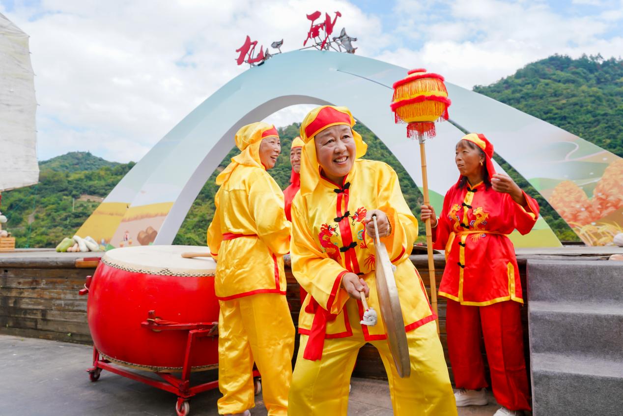 今年晒秋活动在延续“非遗民俗+大地艺术”传统的基础上,融入更多徽州民俗表演元素。歙县传统民俗——瞻淇鱼灯与定潭舞龙轮番登场,鱼灯游弋如江涛涌动,金龙翻腾似稻浪起伏,为丰收时节增添灵动祥瑞的色彩,生动传递徽州人民祈求丰年、团圆美满的文化愿景。