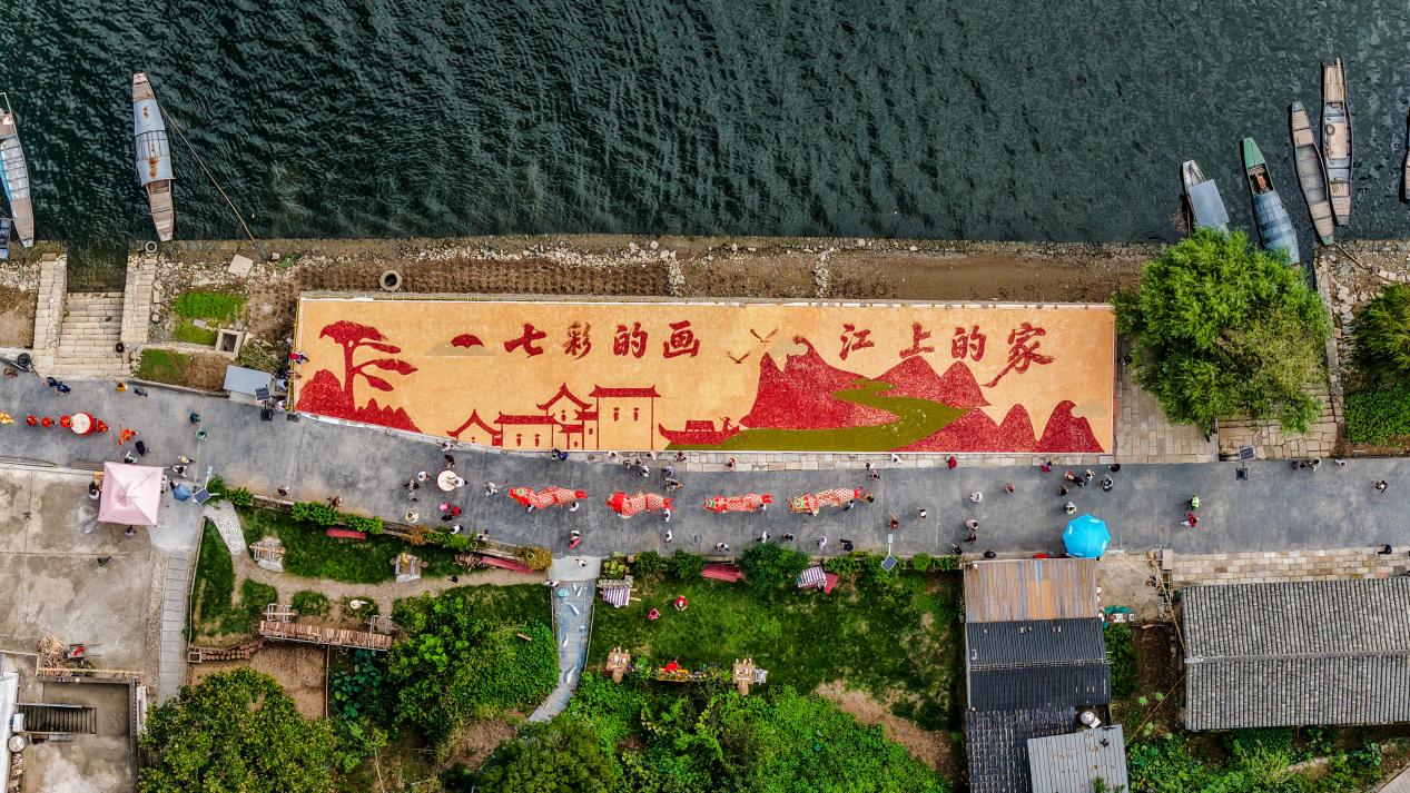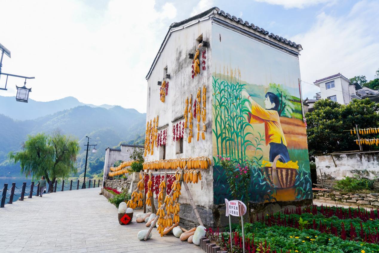 色彩斑斓的谷物艺术装置、错落有致的立体晒架、装饰一新的临江渔船,将新安江畔的秋日丰收转化为可游可赏的立体画卷。游客既可沉浸于“五谷丰登”“丰收新安江”等大地艺术景观,也可参与“甘蔗榨汁坊”“瓜果满架”等互动体验,在趣味中感受徽州深厚的农耕文化与丰收喜悦。