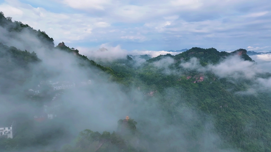 初秋时节,位于安徽省休宁县的齐云山风景区横江如练,景色宜人,清澈的江水倒映着两岸的民居与稻田,构成一幅动静相宜、色彩斑斓的乡村水墨画。
