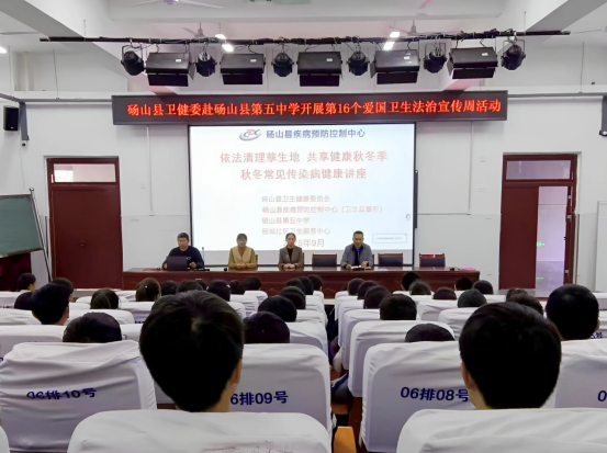为进一步普及爱国卫生法律法规和健康知识,增强学生自我保健意识,日前,砀山县卫健委第16个爱国卫生法治宣传周活动走进砀山五中。